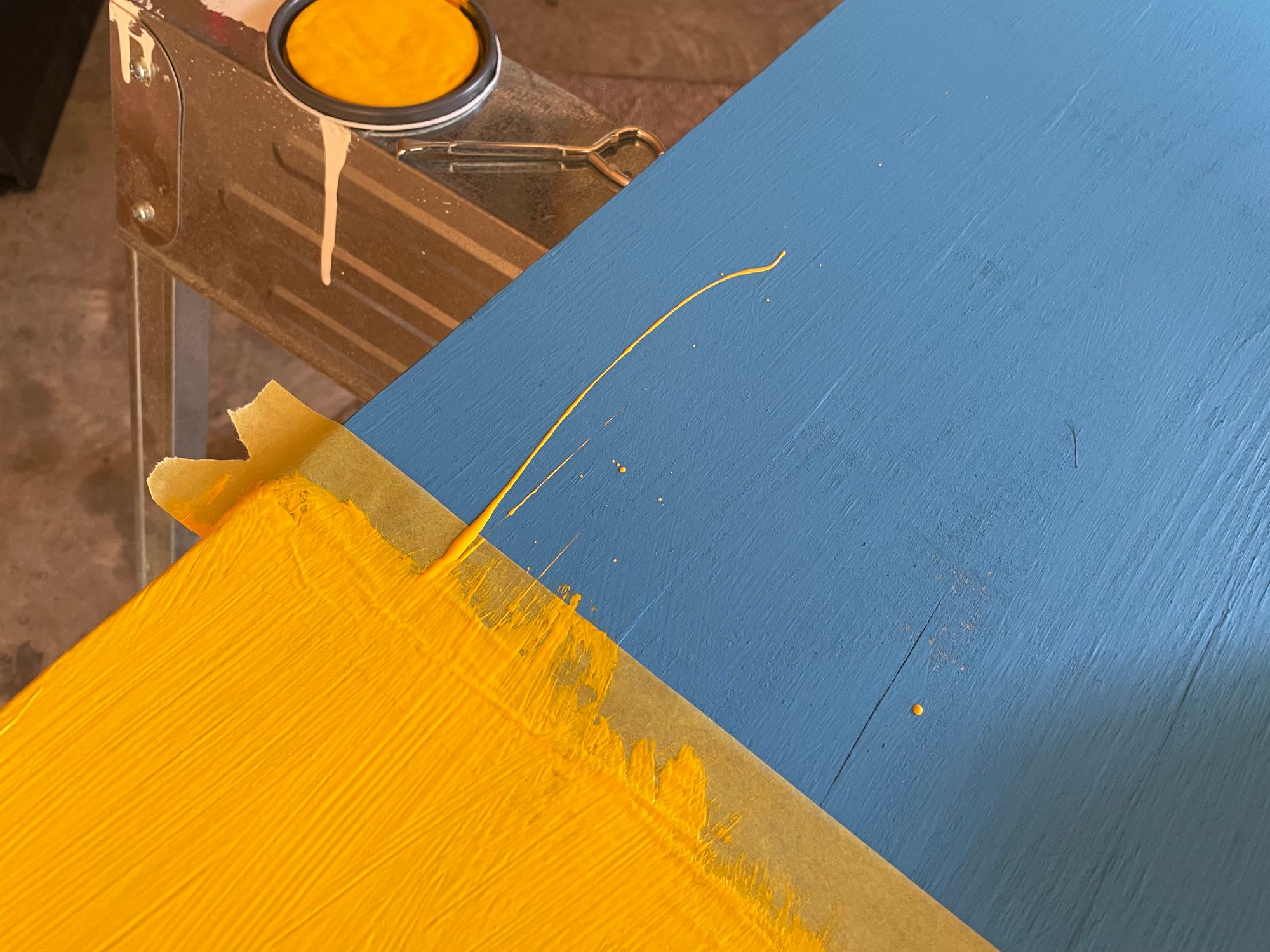 - Paint the yellow parts first, sand and all.